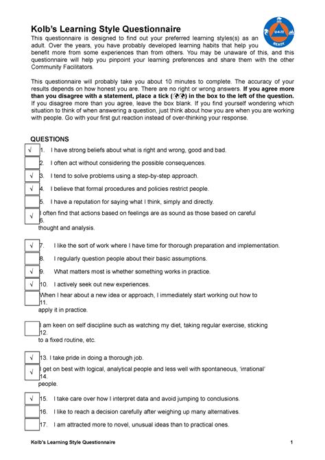 Read learning styles kolb questionnaire brainbase Library Binding